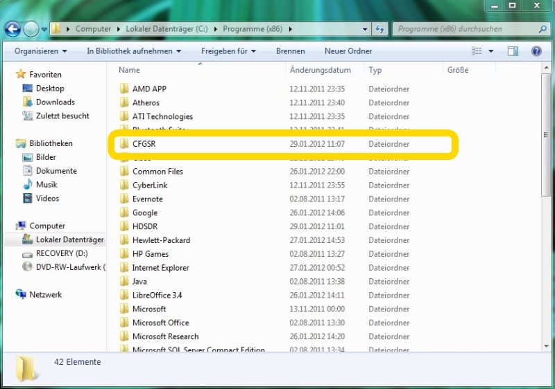 | Hier sollte sich der Ordner "CFGSR" befinden diesen einfach öffnen. |