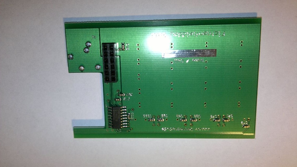 Die Hauptplatiene ist erstmal fertig was das Löten angeht, hier die ansicht von der Lötseite her