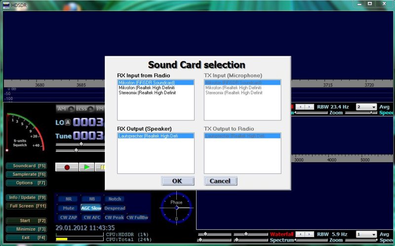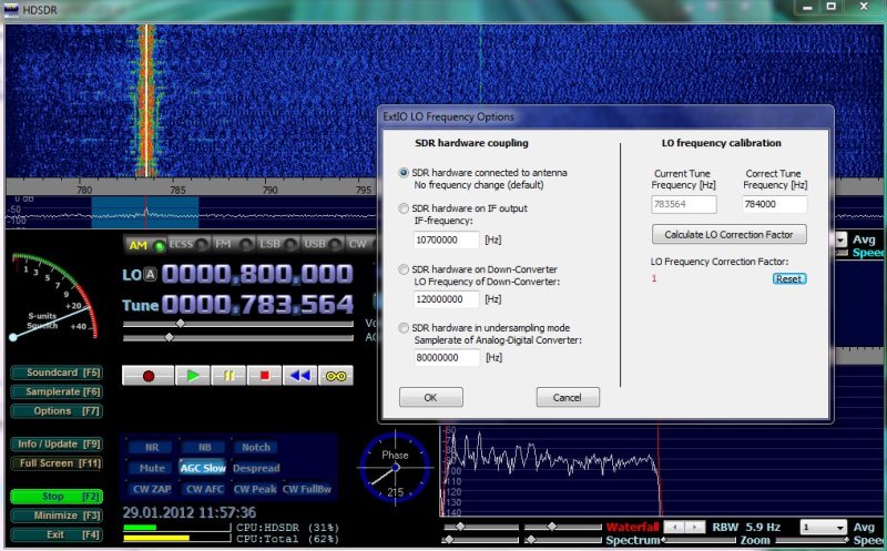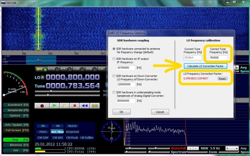 HDSDR starten und Frequenz- abstimmung / Kalibrierung einstellen