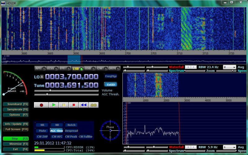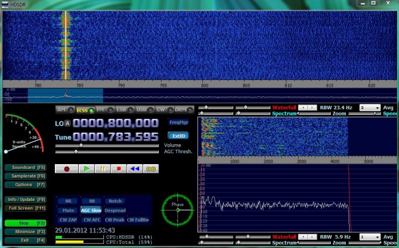 Nach den Klick auf Start [F2] geht es auch gleich los mit den Empfang. Man kann die Software auch nutzen und die Frequenz einstellen. Sollte kein Tuning möglich sein, haben Sie vergessen die Treiber DLL entsprechend zu kopieren.