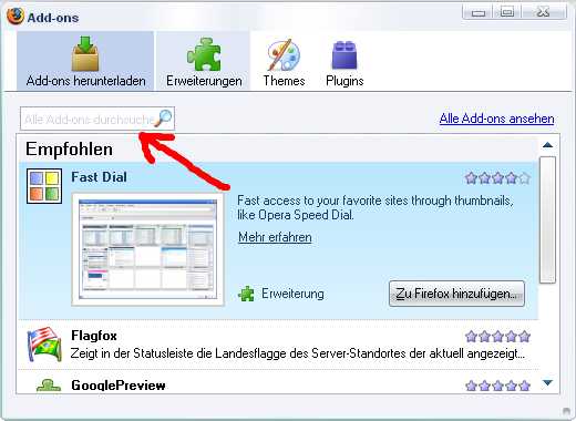Nachdem der Firefox installiert ist ,klicken Sie bitte wie oben zu sehen auf den Menüeintrag Extras und ADD-ON.